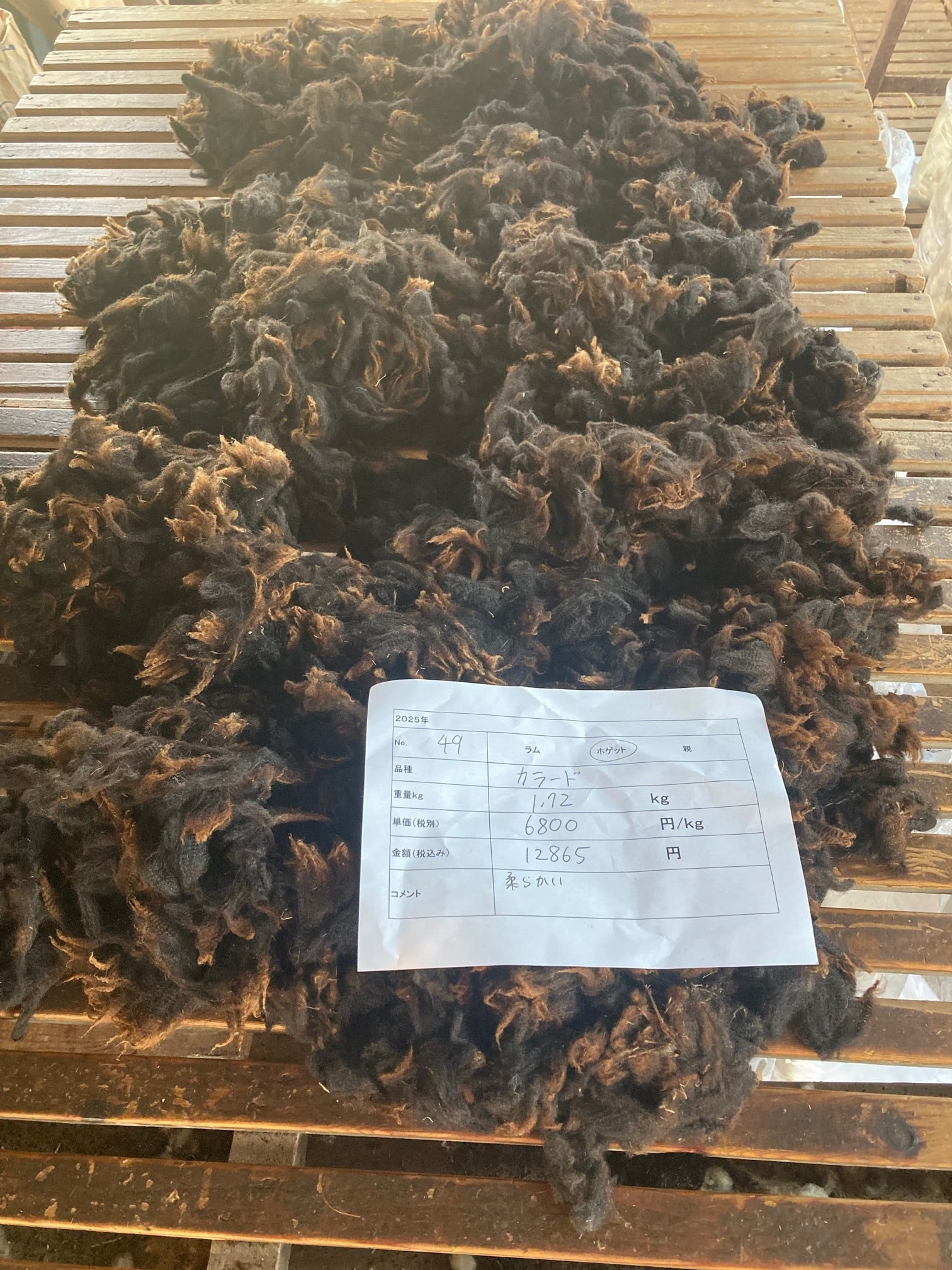 フリースとは羊1頭分の毛刈りした羊毛です。 今回ご紹介するのはカラード(色付き)の羊毛です。 ーーーーーーーー 1.72kg、柔らかいフリースです